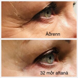 “Eg eri so mega glað fyri úrslitið, havi ætla mær skurðviðgerð til eygnalok í áravís, men tá eg las um nýggju viðgerðina uttan skurð, valdi eg at royna tað” soleiðis sigur ein vælnøgdur kundi.