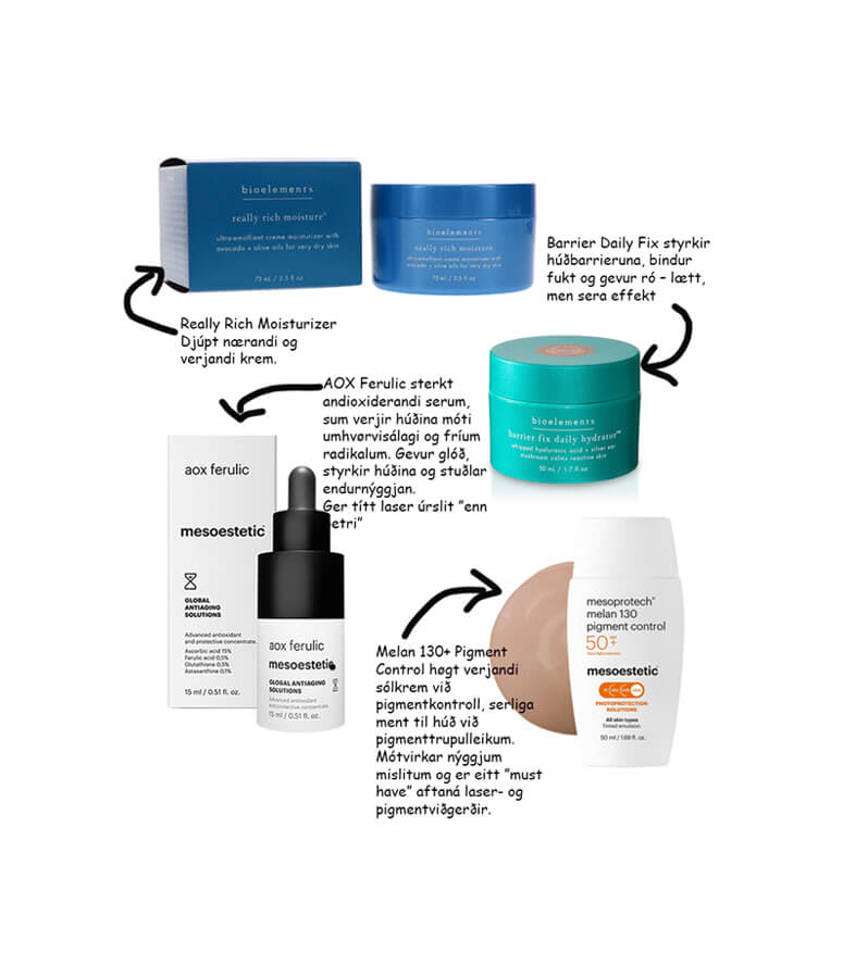 Viðgerðin betrar um heildargóðskuna av húðini, tí hon setir kroppin í gongd at framleiða nýtt kollagen. Hetta gevur eina húð, sum gerst: fastari, meira elastisk, vakrari og sterkari.
