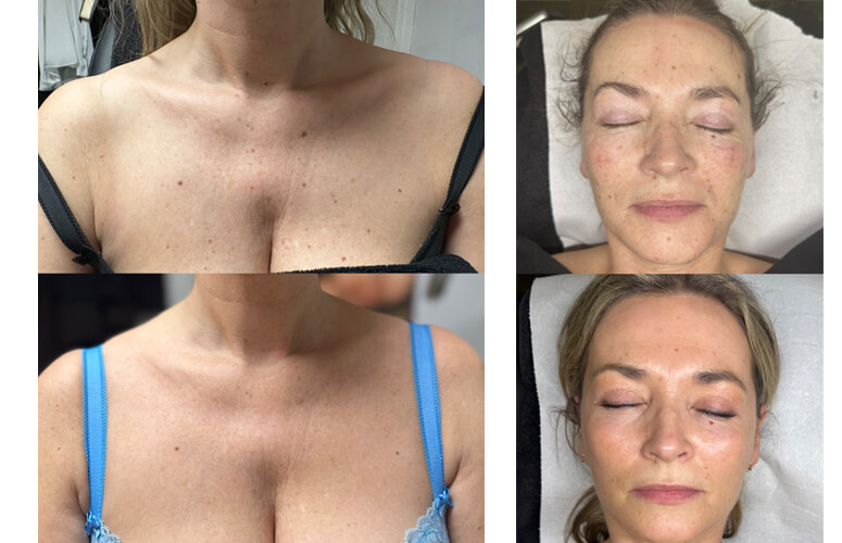 Light & Bright er ein av okkara mest elskaðu viðgerðum, tí hon gevur sjónlig úrslit eftir hvørja viðgerð og gevur varandi betringar yvir tíð. Viðgerðin er samansett, við IPL og Frax, ið arbeiðir í yvirflatuni og djúpt í húðini.